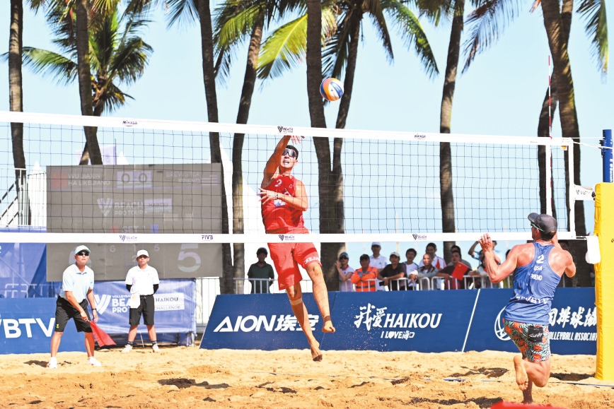 2023年11月3日,世界沙滩排球职业巡回赛挑战赛在假日海滩上演。记者 石中华 摄