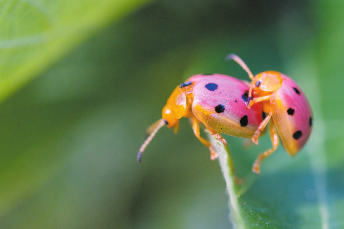 五源河国家湿地公园中,栖息着色彩绚丽的瓢虫。