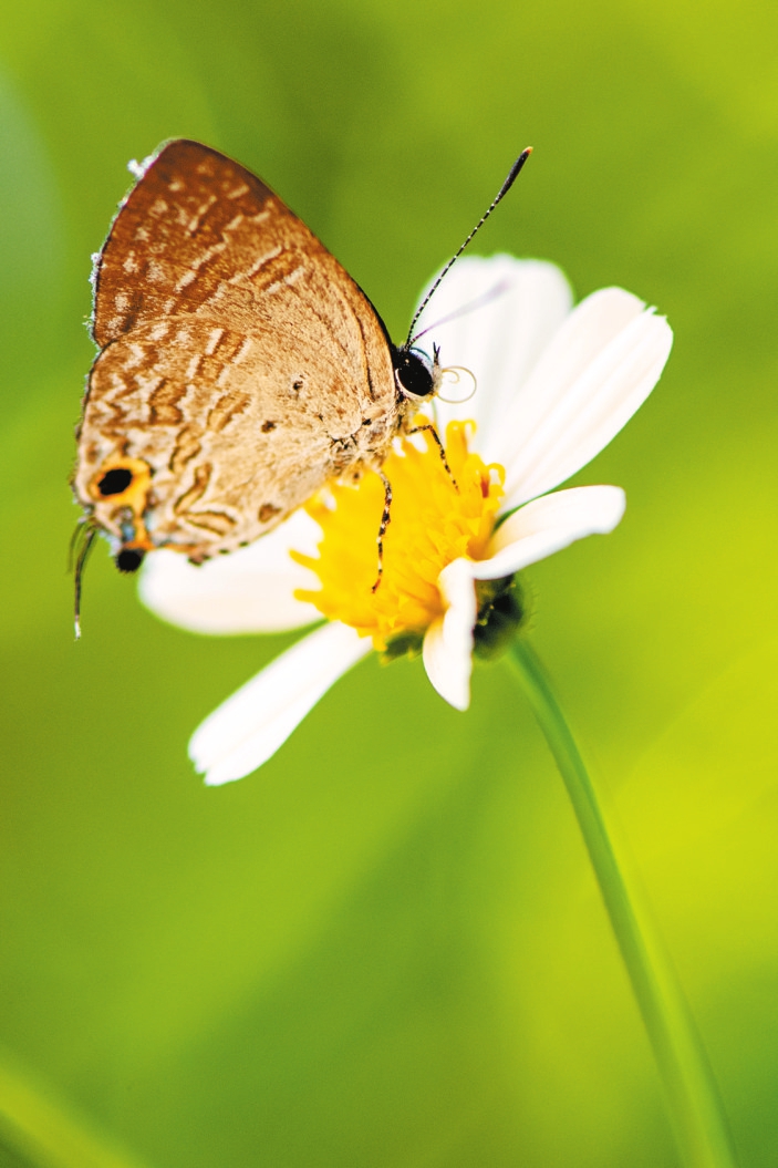 在五源河国家湿地公园里,一只生灰蝶正在采蜜。