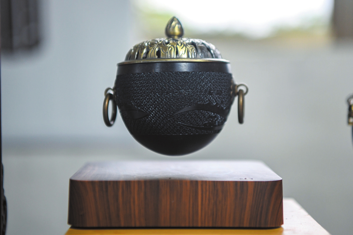这是海南特色商品——悬浮椰雕香炉。本报记者 杨鹤 摄