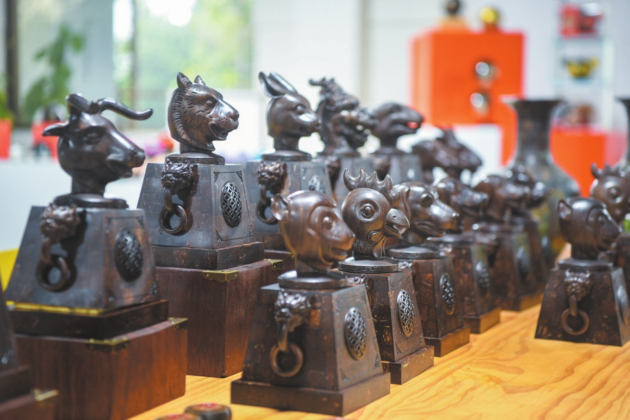 这是海南特色商品——椰雕和木雕制作而成的十二兽首香薰炉。 本报记者 杨鹤 摄