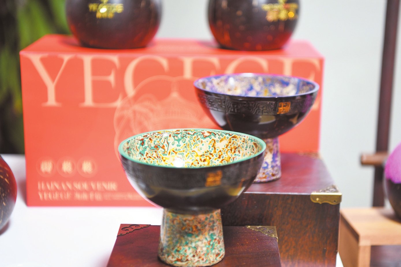 这是海南特色商品——漆椰雕高脚碗。本报记者 杨鹤 摄