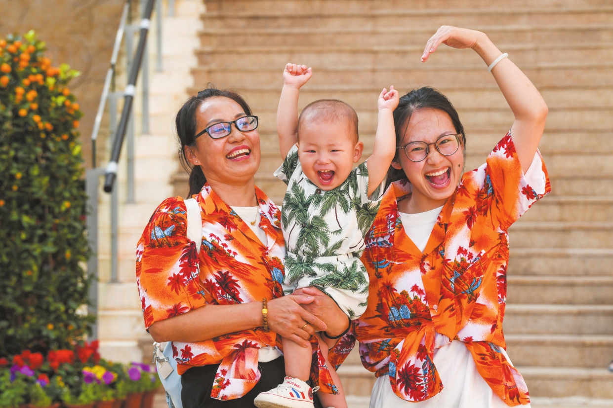 2月21日,旅客在海南省博物馆开心合照。本报记者 康登淋 摄