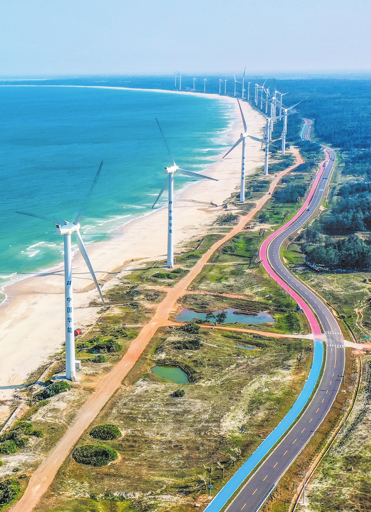景色优美的文昌木兰湾风车海岸。本报记者 康登淋 摄