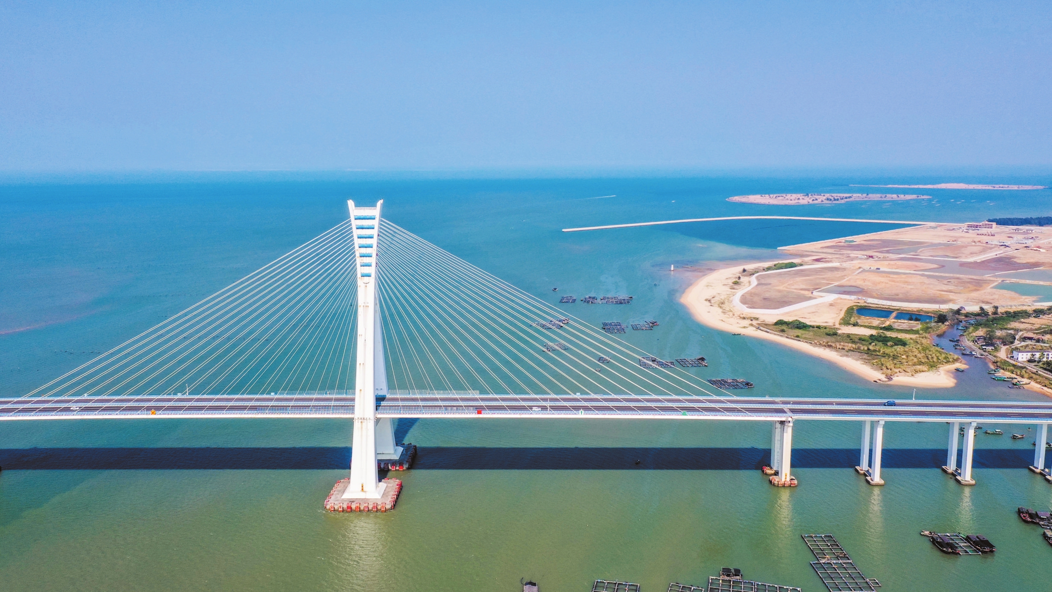 2月21日,观光巴士途经连接海口与文昌的海文大桥。空中俯瞰,大桥气势磅礴。本报记者 康登淋 摄