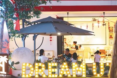 近日,海口市秀英区西秀镇荣山寮村,游客在音乐餐吧用餐,畅享悠闲生活。