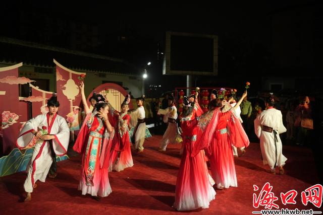 2月24日消息,2月24日(农历正月十五),海口府城元宵换花节活动正火热进行,当晚,在海瑞故居点位现场举行名为“飞花令”的换花舞活动表演,国风舞曲音律和新颖的舞蹈编排展现出一场恰逢其时的美好场景,给市民游客送上美好的节日祝福。同时,在优美的换花舞场景中为市民游客穿插了府城历史文化知识有奖互动游戏、古人互动、个人才艺展示、背诵古诗词等体验节目,市民游客热情高涨,参与氛围十分浓厚。