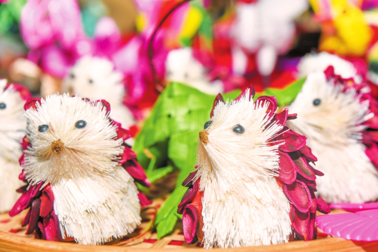 2月29日,在骑楼老街临街店铺内,摆放着制作精美、憨态可掬的小刺猬工艺品,颇受市民游客欢迎。本报记者 康登淋 摄