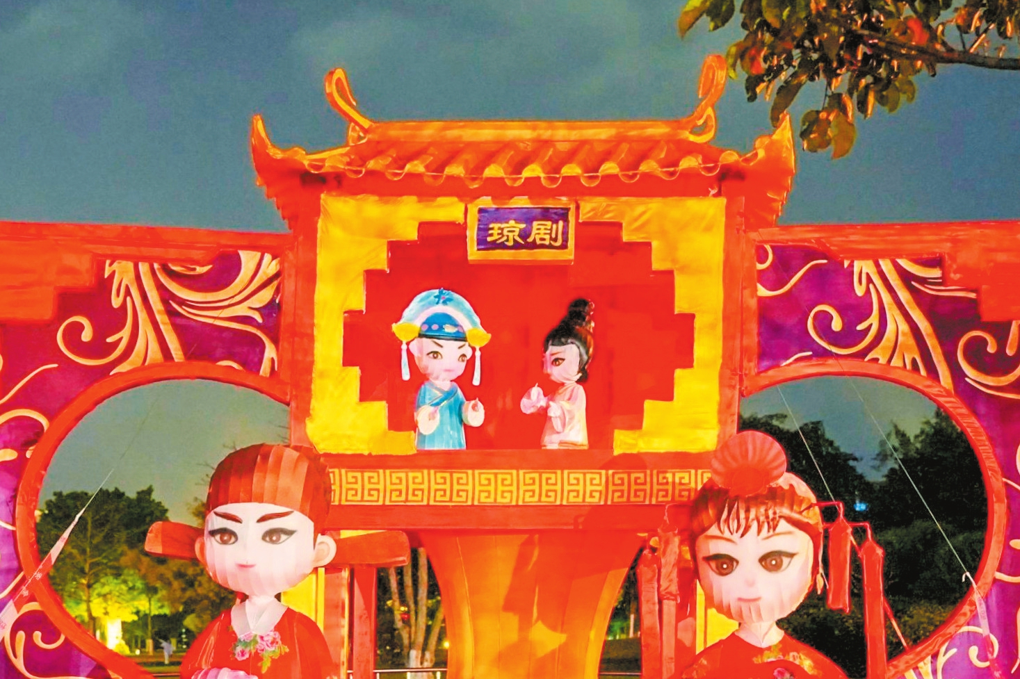 万春会“万灯耀海口,春意满琼州”大型灯展在万绿园亮灯,具有海南元素的花灯格外吸引市民游客的目光。