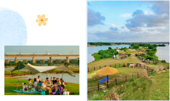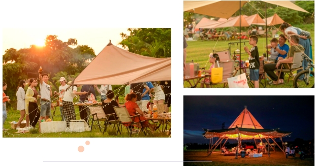 公园特色:露营(音乐会、户外烧烤、围炉煮茶、精美餐食饮品),还能拍到落日飞机动车同框。