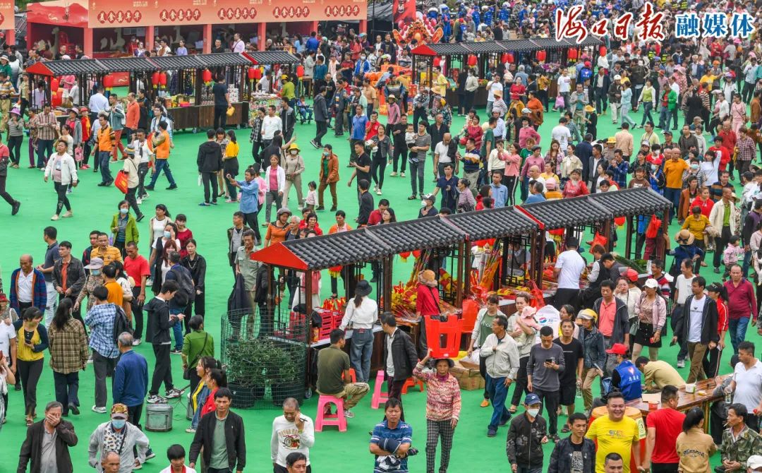 现场,乡村振兴特色农产品、冼夫人文创展、美食嘉年华、五福产品和非遗文化展等五大展区吸引了市民游客前来玩赏吃逛。其中,在非遗文化展区域,非遗传承人带来椰雕、糖画等非遗项目展示,吸引了许多人围观,“以前了解非遗都是通过网络和书籍,今天就在我们身边实实在在地感受到非遗的魅力。”游客吴女士说,现场还有各式各样的小吃、饮品等当地特色美食,“让我们在品味民俗文化的同时,还能满足味蕾上的需求。”
