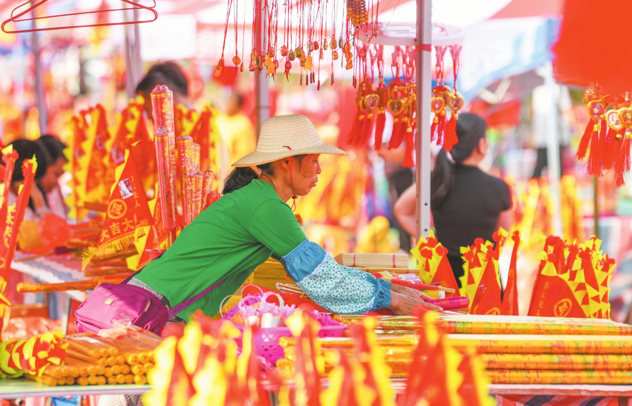 3月17日,2024年(第二十三届)海口冼夫人文化节便民市集上,商户正在摆放各式各样的小商品。 本报记者 康登淋 摄