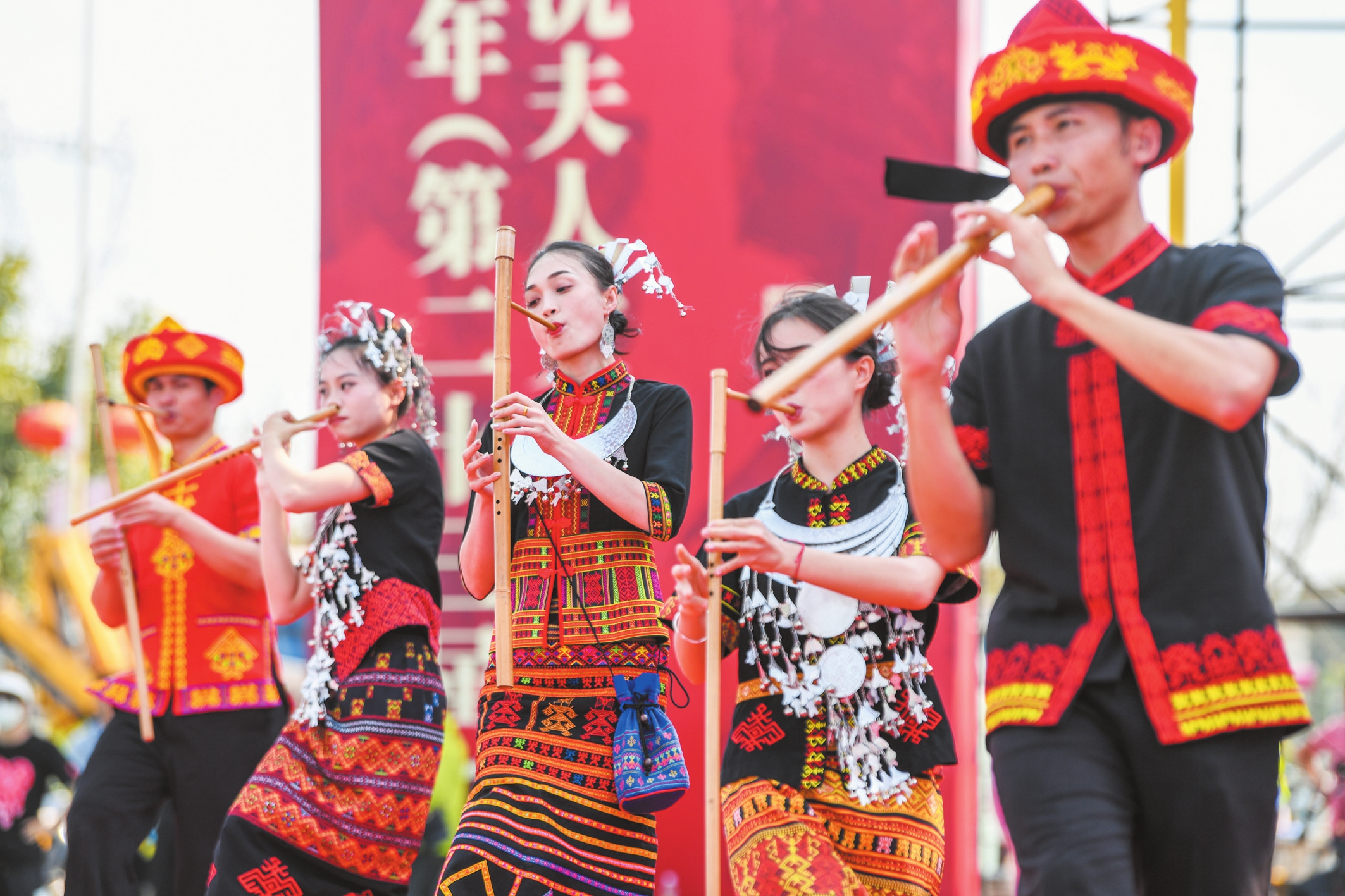 3月17日,2024年(第二十三届)海口冼夫人文化节海南非遗项目展演精彩纷呈。图为竹木器乐演奏《黎家变了样》。本报记者 康登淋 摄
