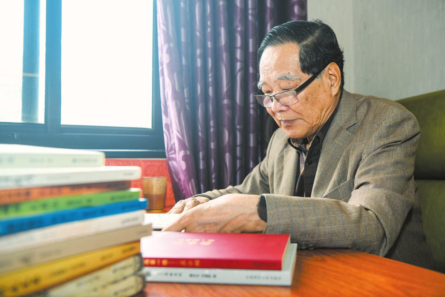 蒙乐生正在阅读书籍。(摄于3月11日)