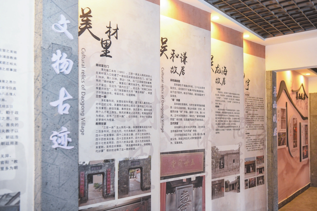 何谓“道贡”?可从村史馆中找到答案,即为“培养贡生之道”。据了解,尊师重教、耕读传家是道贡村的传统,该村明末出了第一位读书人吴灵处士,清代又计有御赐修职郎五人,贡生、监生、庠生十六人。
