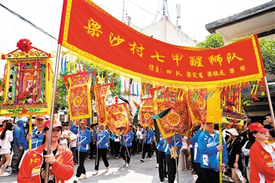 记者在新坡镇冼夫人文化节现场看到,作为冼夫人信俗的重点活动之一——“装军巡游”,吸引了四方百姓前来观看、体验。现场围观的市民游客里三层外三层,祈福沾好运,场面热闹非凡。