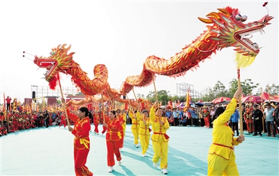 舞狮队进行表演。