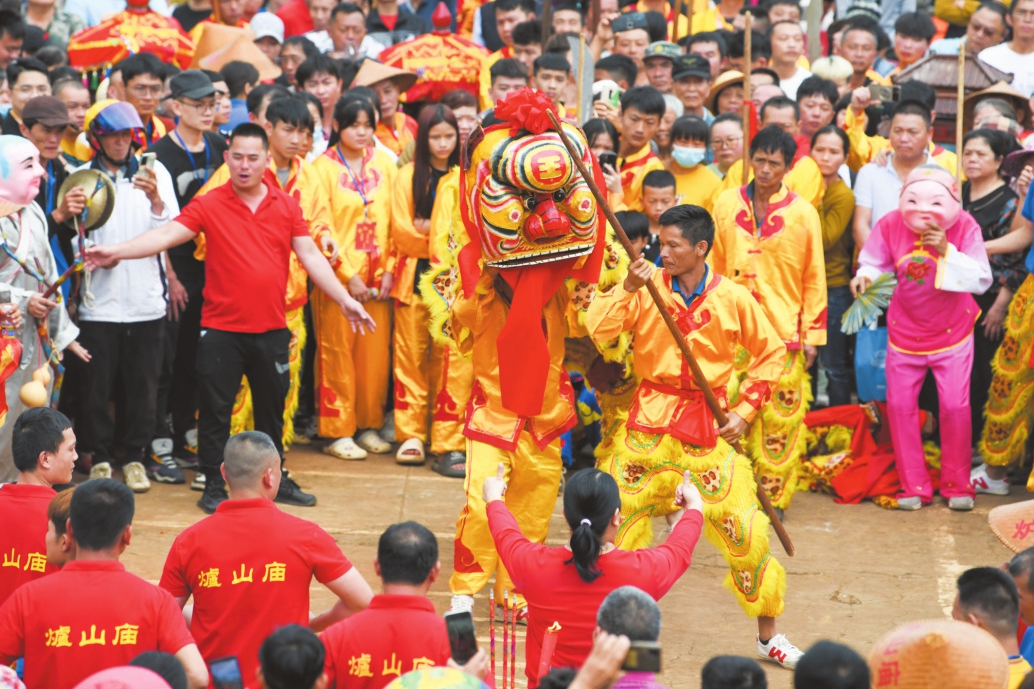3月21日,美兰区三江军坡节在三江镇举办,虎舞表演吸引市民游客观看。 本报记者 杨鹤 摄