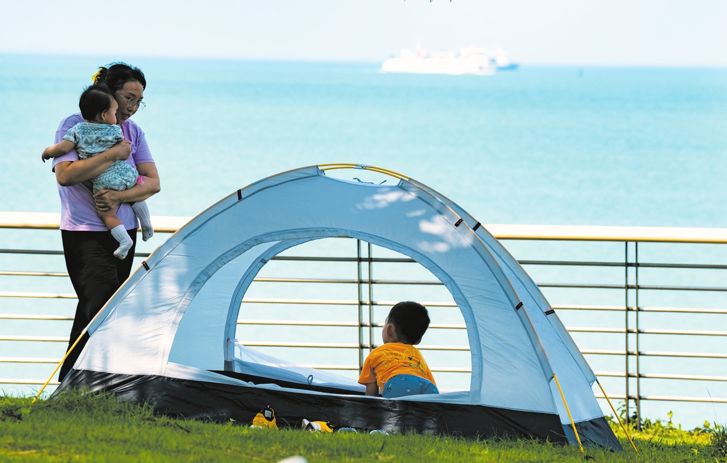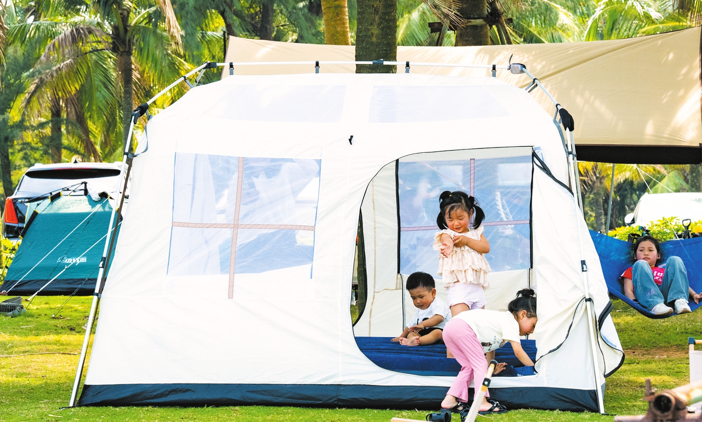 3月23日,市民来到海口西海岸海边露营,几位小朋友在帐篷里愉快玩耍。本报记者 杨忠凯 摄