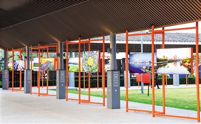 走过“琼台福地牌楼”,正式进入海口城市展。位于展览入口右侧的风雨连廊处,展示“发现海口之美摄影大赛”中的多幅作品,聚焦海口新老地标、城市人文等亮点,讲述海口的发展变化。