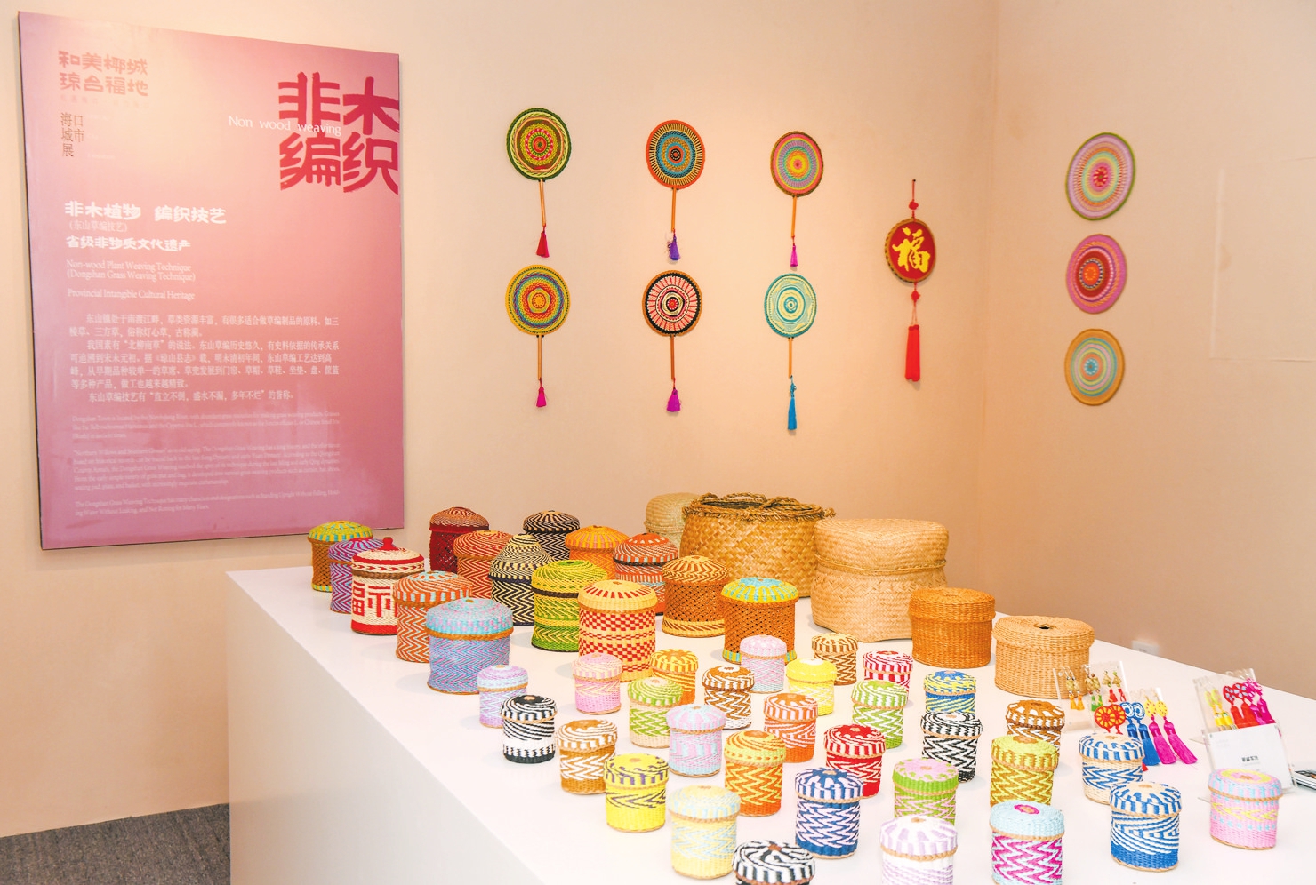 3月26日,2024年东屿岛文化公园海口城市展开幕。这是现场展示的东山草编作品。本报特派记者 康登淋 摄