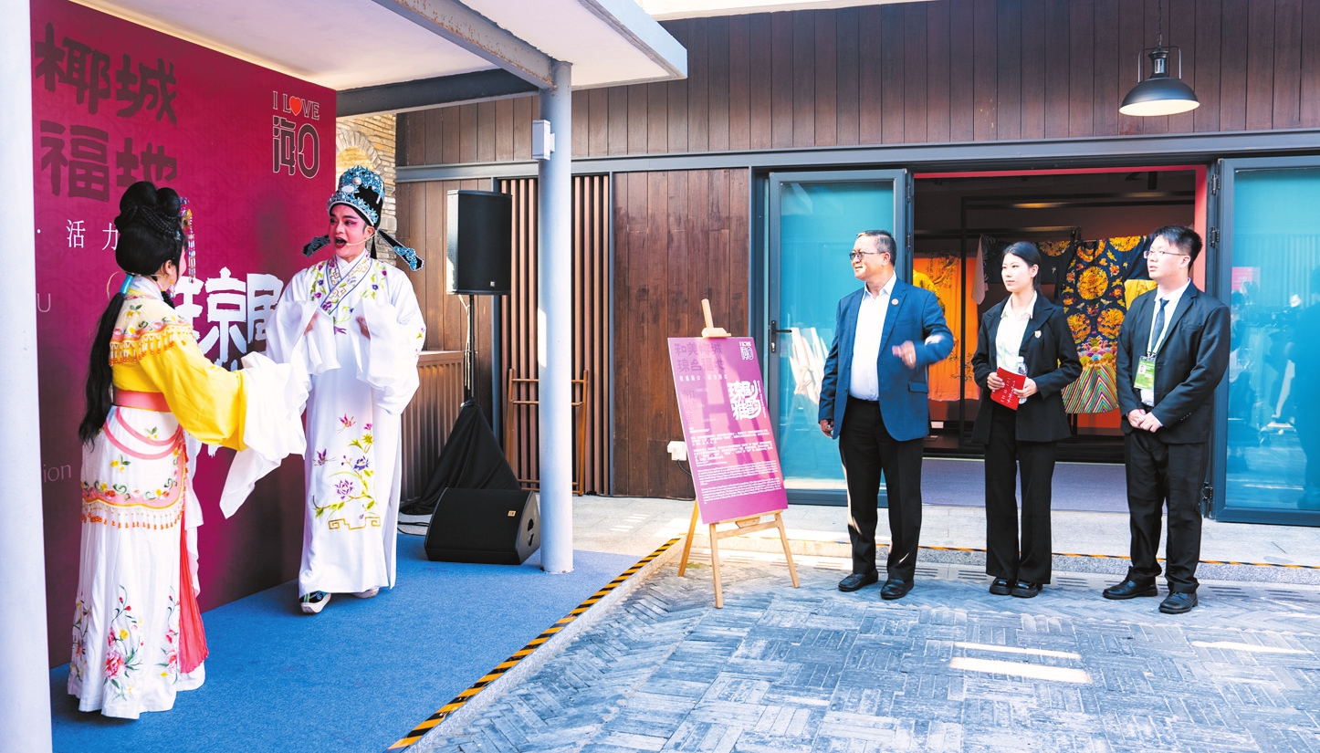 3月27日,在东屿岛文化公园海口城市展“和韵”展厅,来自老挝的嘉宾正在欣赏琼剧表演。本报特派记者 杨忠凯 摄