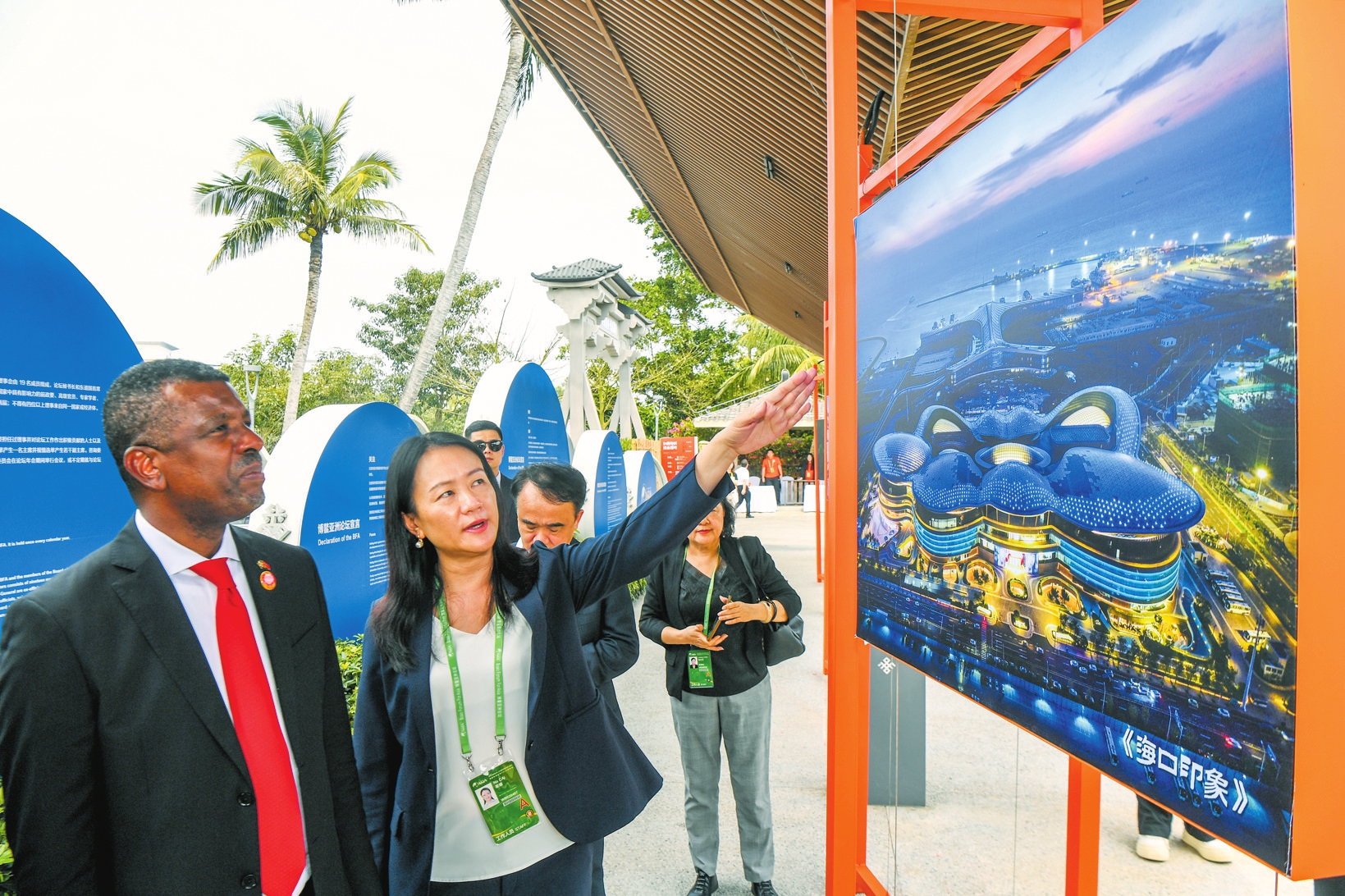 3月28日,在东屿岛文化公园海口城市展现场,外国嘉宾驻足欣赏“大美海口摄影展”。本报特派记者 康登淋 摄
