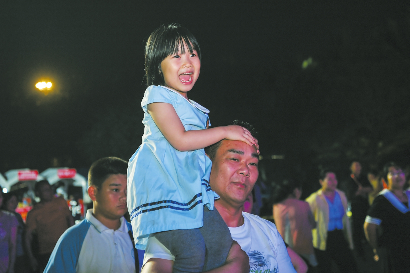 ②市民游客现场观看文艺晚会。本报记者 孙士杰 摄