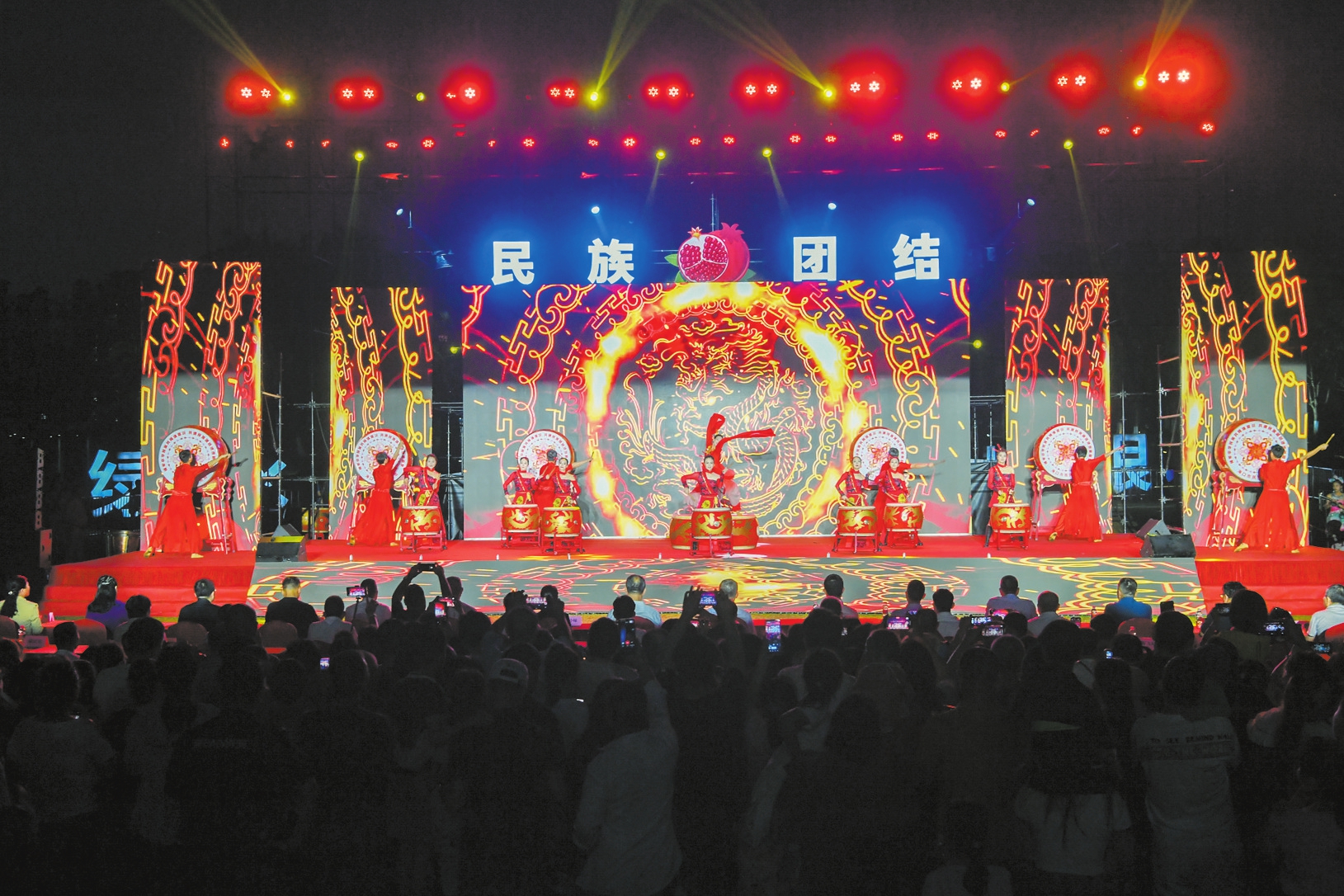 当天20时,文艺晚会在灯光秀中拉开序幕。随后,黎族苗族传统歌舞、民族乐器合奏等节目一一上演,为观众献上一场极具民族文化魅力、彰显民族团结进步精神的视觉盛宴,收获市民游客阵阵掌声。