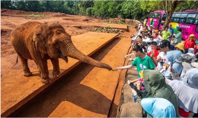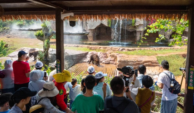 上午九点三十分,海南智力残疾人协会组织的30组孤独症儿童家庭代表抵达海南热带野生动植物园,在海野研学导师的带领下深入热带雨林,开启了一场愉悦暖心的自然之旅,旅途中还与亚洲象、棕熊、梅花鹿等动物朋友们友爱互动。孩子们与家长们脸上都洋溢着欢乐幸福的笑容。