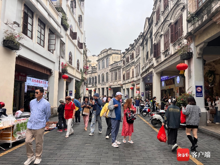 游客打卡海口骑楼老街。记者 丁文文 摄