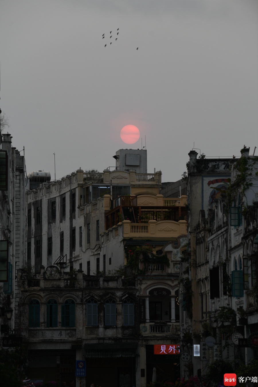原标题;原创组图丨打卡海口骑楼老街 邂逅一场精美的日出