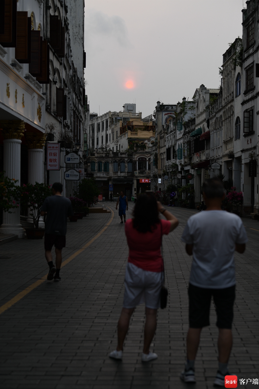 游客在拍摄海口骑楼老街的日出美景。记者 陈卫东 摄