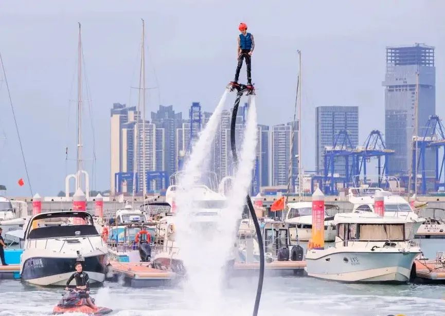 “水上飞人秀”引人入胜、精彩绝伦。这项令人惊叹的高科技水上娱乐运动充满了惊险与刺激,将进一步激发市民游客对水上运动的热情。