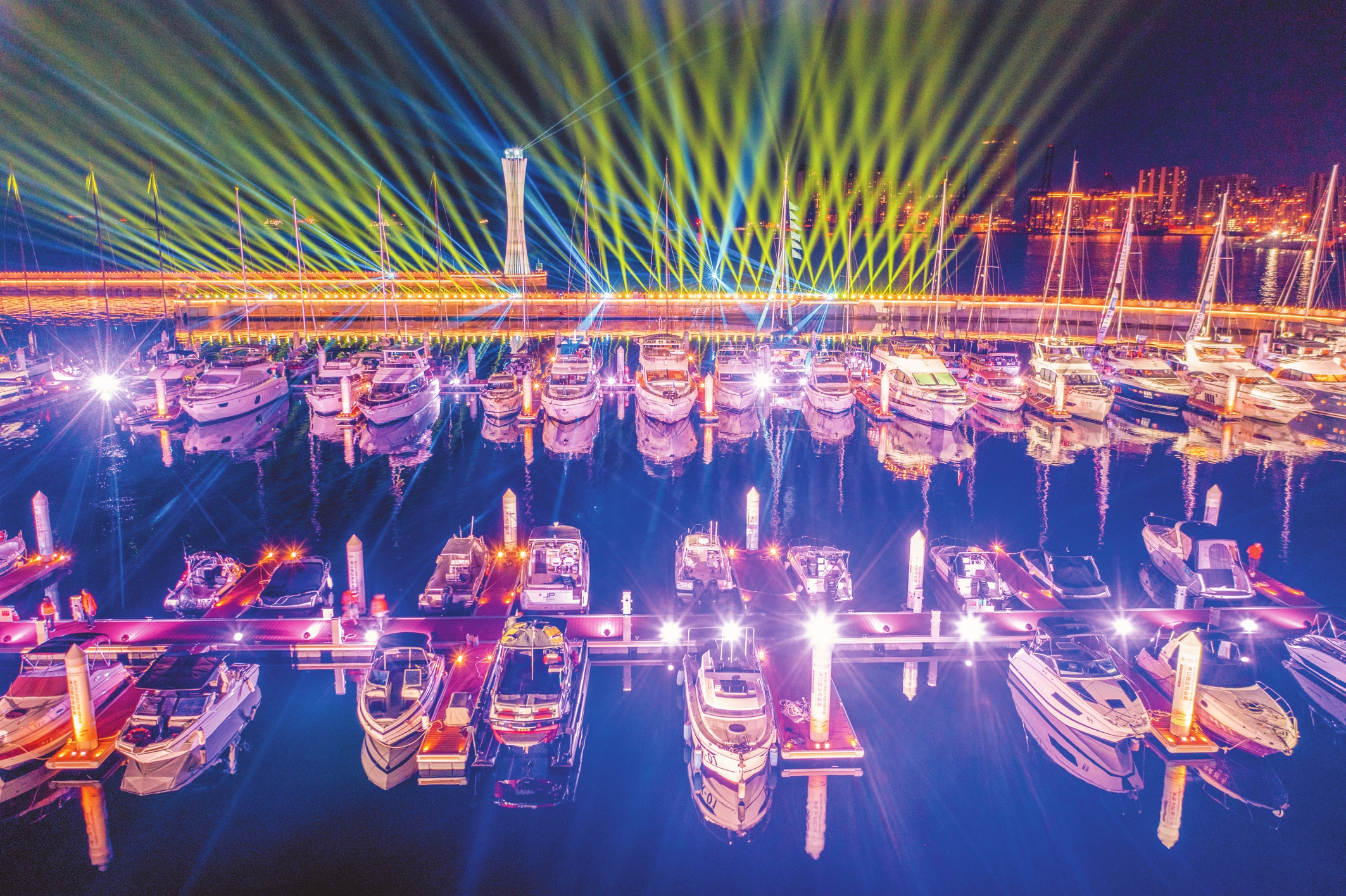 这是第四届中国国际消费品博览会海口国际游艇展期间举办的灯光秀表演。本报记者 石中华 摄
