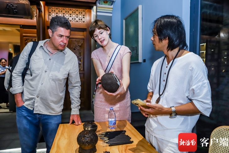 外媒记者在活动现场拍摄“滋游记”海南特色文创食品。主办方供图