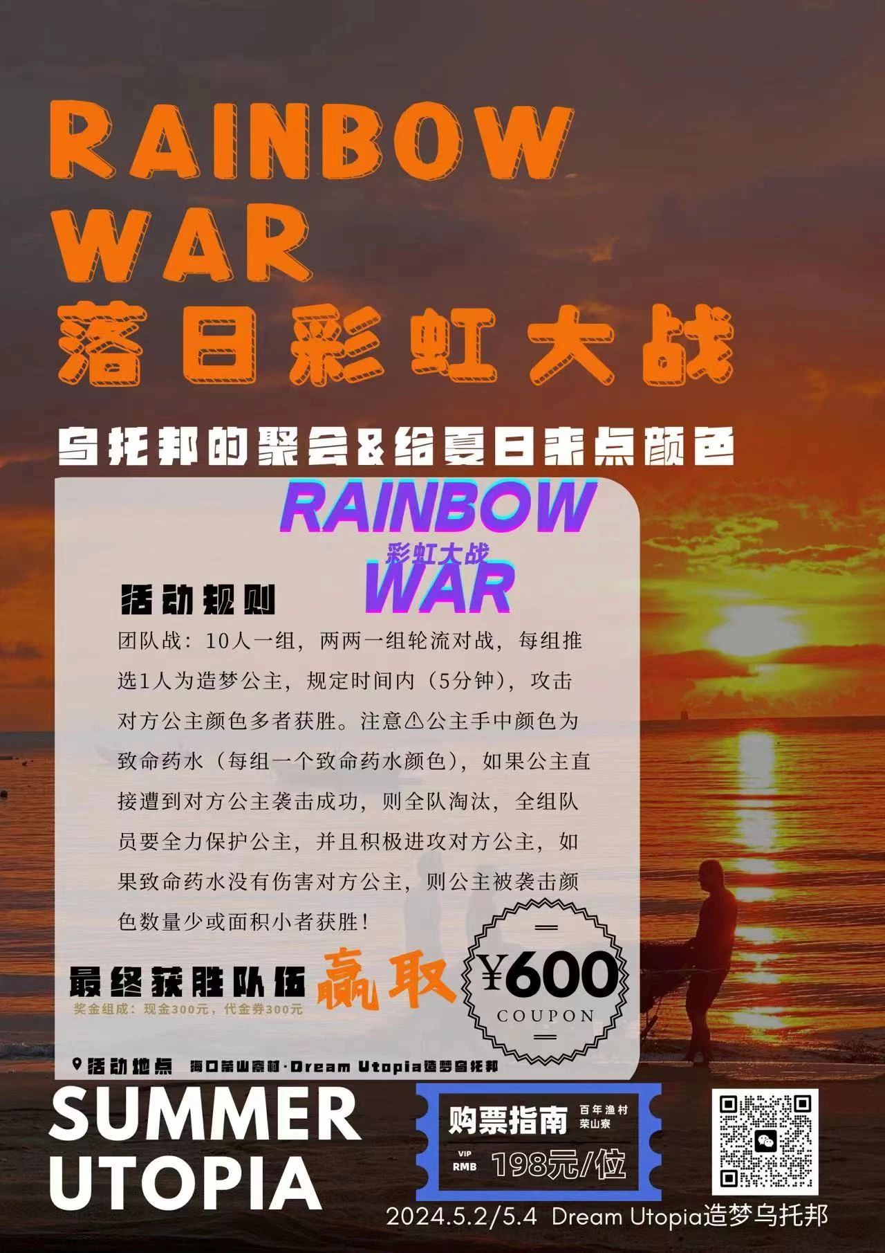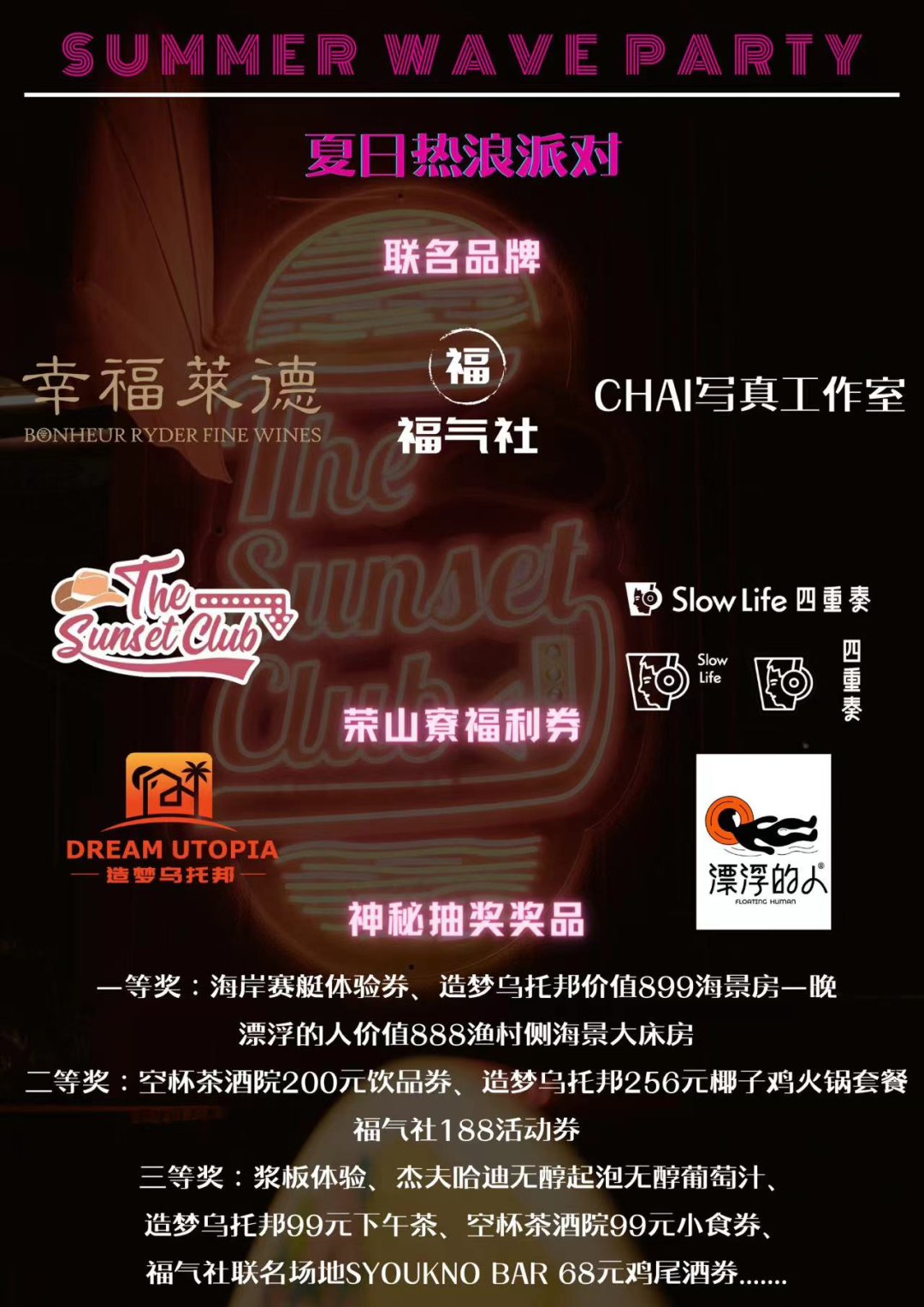 一等奖:海岸赛艇体验券、造梦乌托邦价值899海景房一晚、漂浮的人价值888渔村侧海景大床房