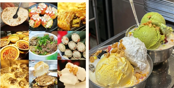 这里汇聚了海南乃至全国各地的特色小吃有清补凉、炒冰、冷饮;有辣得过瘾的鸭脖、烧烤、炸炸、串串等也有各地有名的饼、面、馕、馍、粉等。