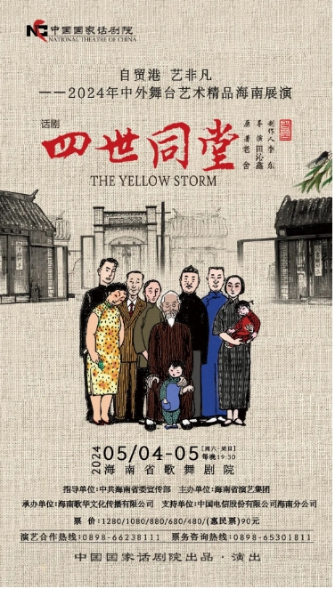 惠民演出、文博展览精彩连连,剧场内同样也有好戏上演。“自贸港 艺非凡——2024年中外舞台艺术精品海南展演”中国国家话剧院话剧《四世同堂》将于5月4日至5月5日19:30在海南省歌舞剧院演出,现场将经典再现文学泰斗老舍先生的经典著作《四世同堂》,穿越时空,带领观众感受从清朝末期到抗日斗争时期的风云变幻,品味民族精神的传承与发扬。