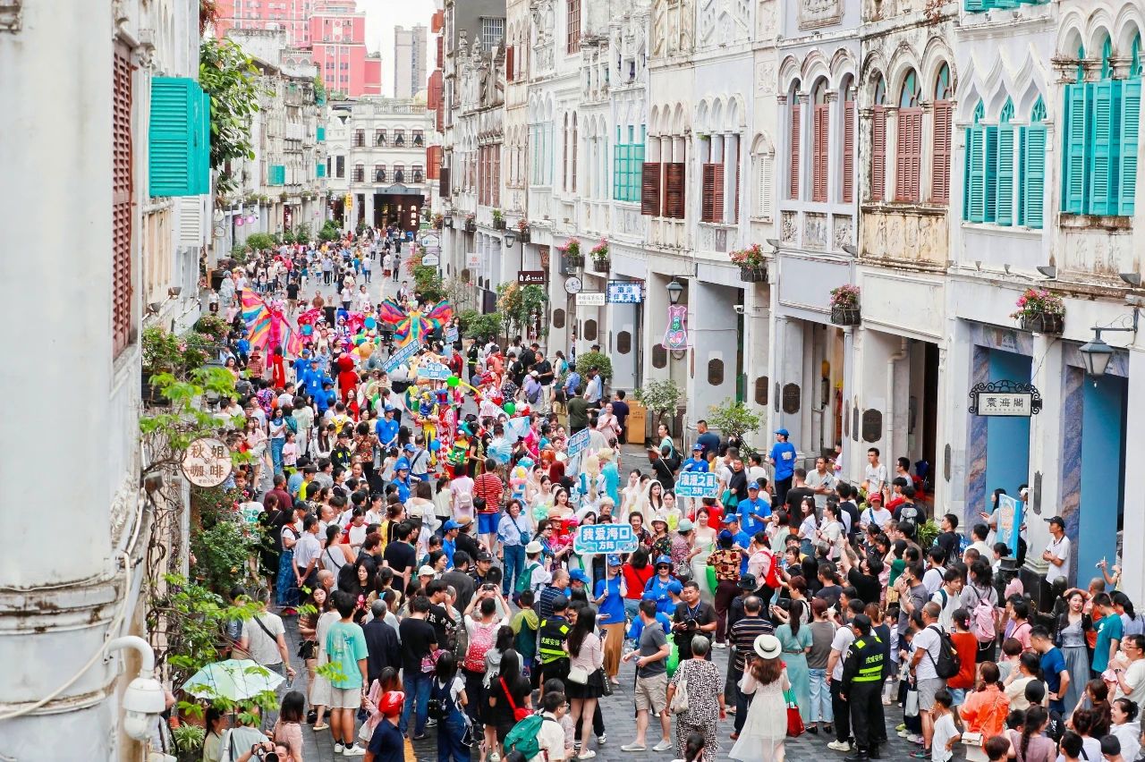 巡游的热闹蔓延全城。“五一”期间,“向海而歌·奇幻巡游季”活动在骑楼老街、海口外滩、云洞图书馆等开展巡游,汉服展示、运动表演、潮流艺术等巡游方阵所到之处,无不是人头攒动、摩肩接踵。