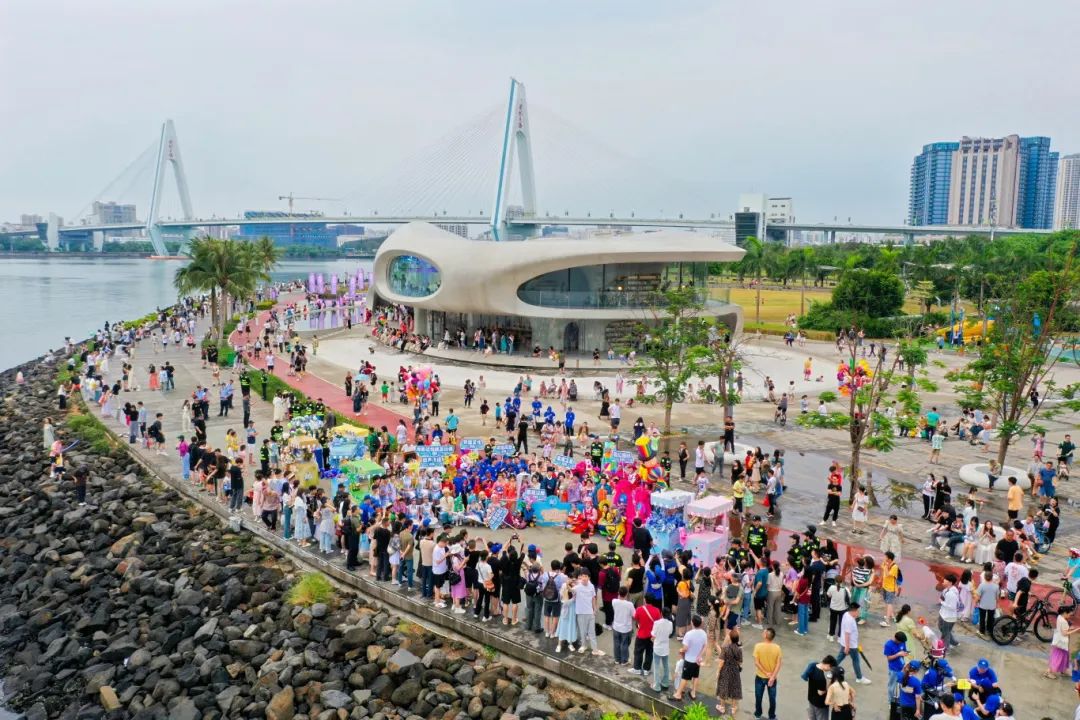 五一期间,“向海而歌•奇幻巡游季”体验活动在海口骑楼老街、世纪公园·云洞图书馆盛大举行,现场人山人海、锣鼓喧天,节庆欢乐氛围拉满。活动当天,一支由舞蹈方阵、非遗文化方阵、国潮汉服方阵、五公祠八公巡游方阵、火山方阵、年代旗袍方阵等组成的奇幻巡游队伍,沿着骑楼老街水巷口至中山路的古老街巷行进。在本次巡游中,海口非遗得到充分展示,八音乐器、信俗展示、公仔纷纷亮相。白天巡游,晚上在椰林广场举行泡泡奇幻T台,少儿时装走秀《多巴胺时尚夜》也成为五一假期期间的璀璨焦点。