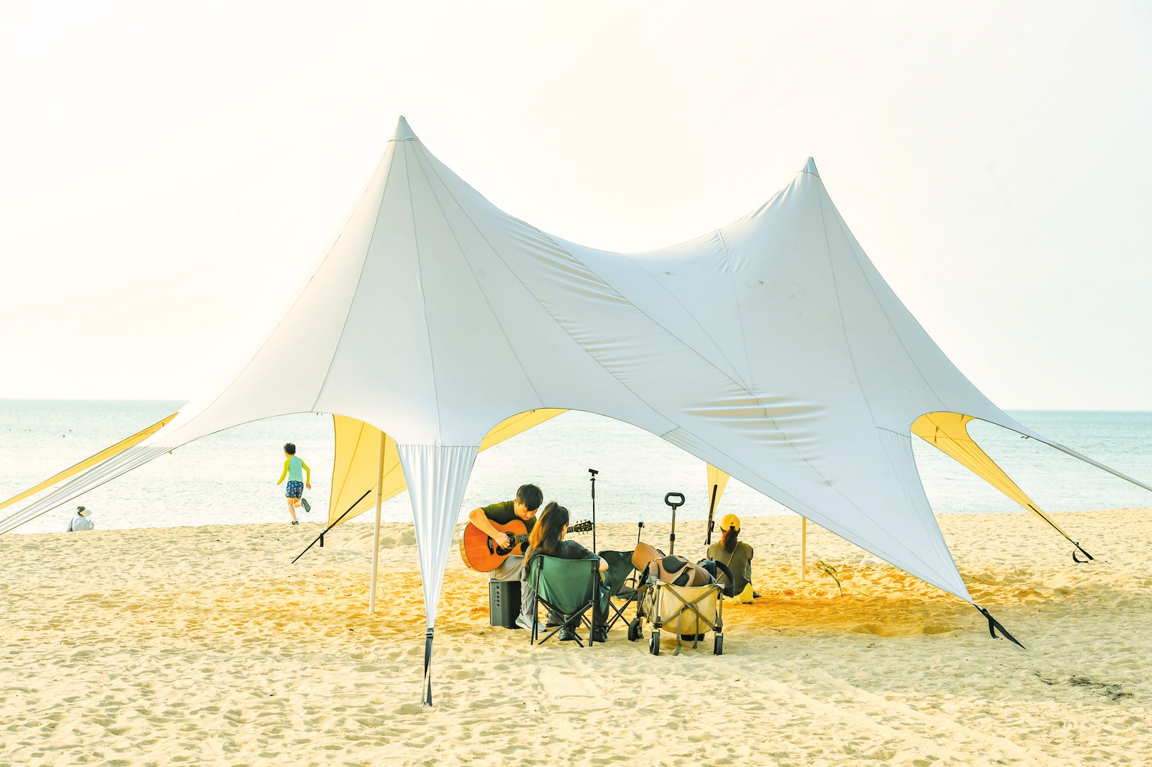5月5日,在海口荣山寮村,市民游客在海边享受沙滩和落日。本报记者 孙士杰 摄