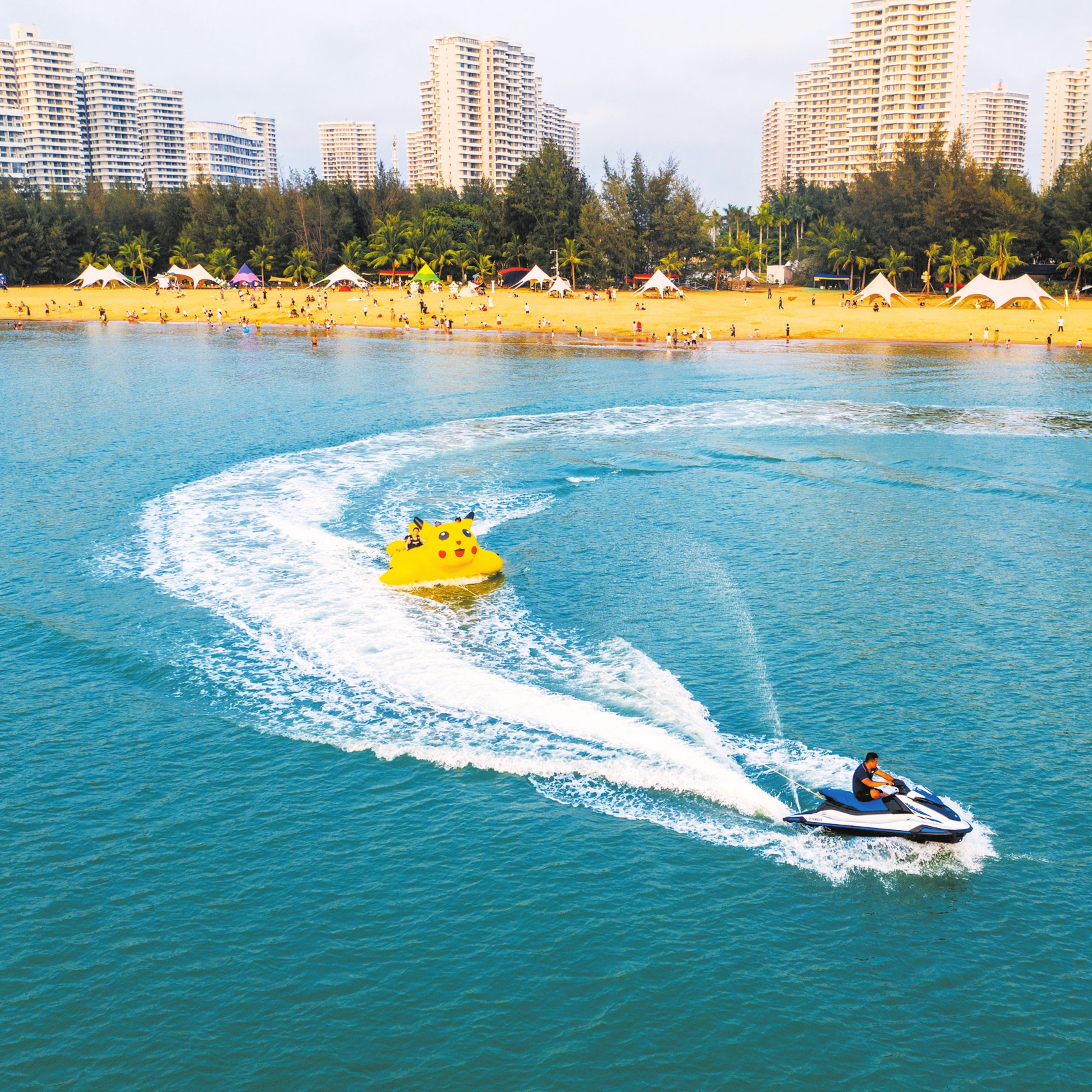 5月5日,在海口秀英区西秀镇荣山寮村,游客体验海上运动项目。 本报记者 石中华 摄