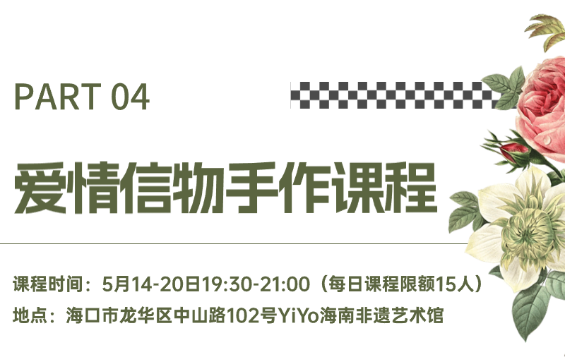 制作爱情信物不仅是一种手工活动,更是一种情感表达的方式。报名参加课程(免费),学习了解各项非遗技艺,亲手制作出独一无二、富有情感的信物,为爱情增添更多浪漫的色彩。