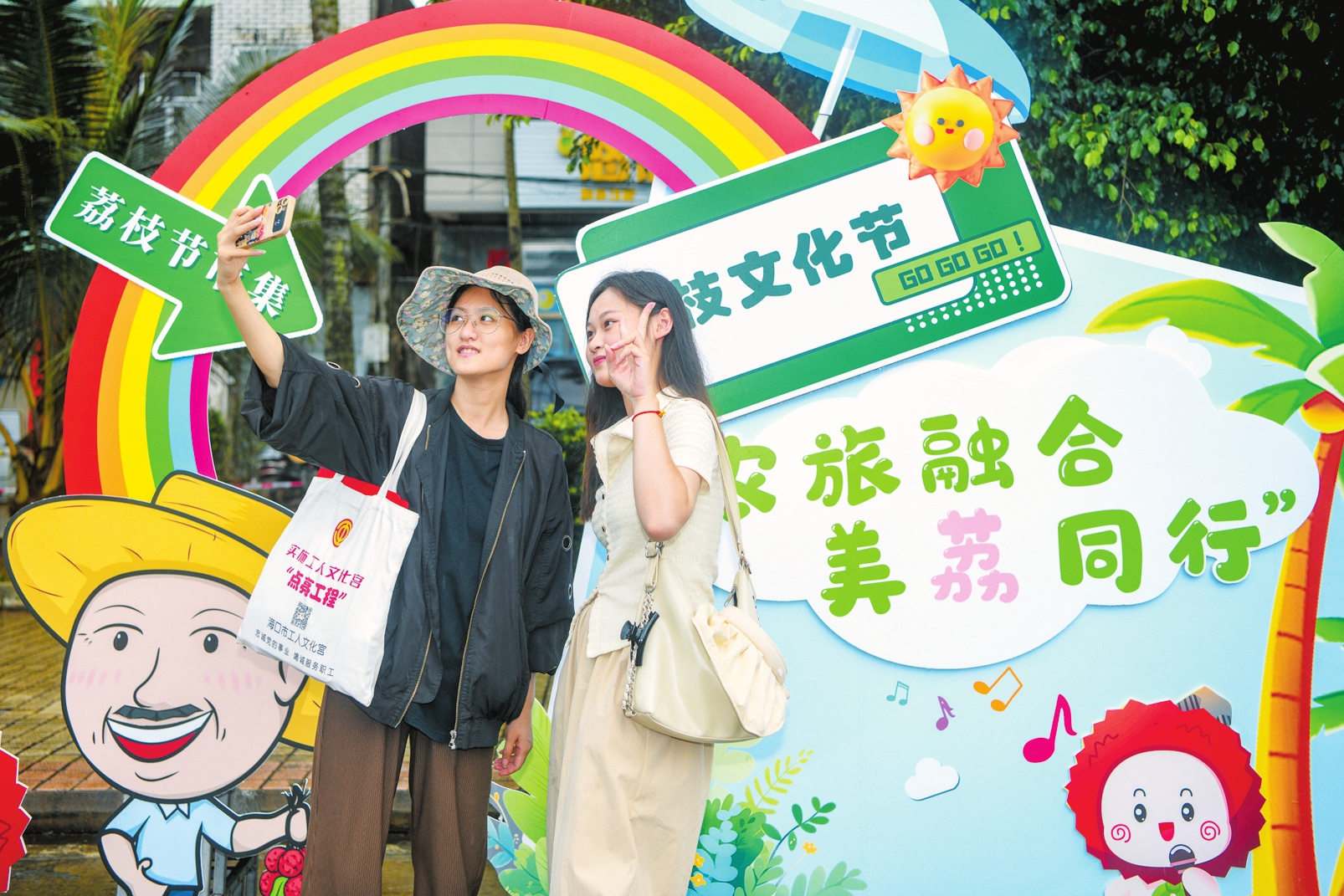 5月20日,海口火山荔枝文化节在琼山区三门坡镇红明农场举办。图为活动现场市民游客在展板前合影留念。 本报记者 苏弼坤 摄