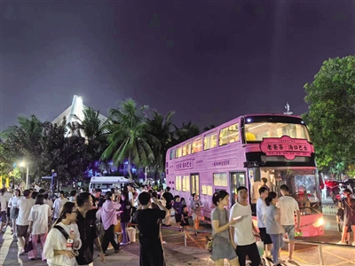 来海口坐老爸茶巴士边吃边逛。(资料图)