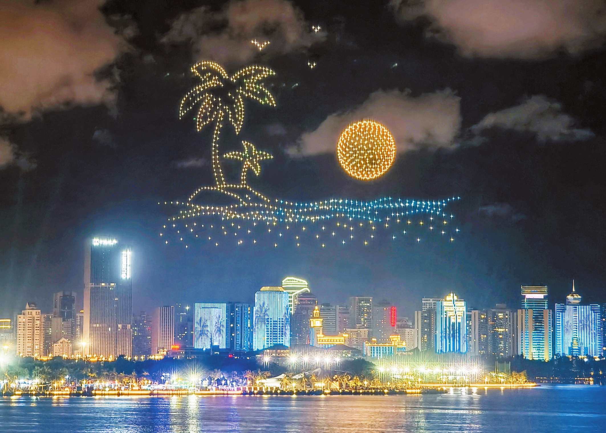 6月22日,海口世纪公园上空,千架无人机上演灯光秀,点燃海口夜空。 本报记者 石中华 摄