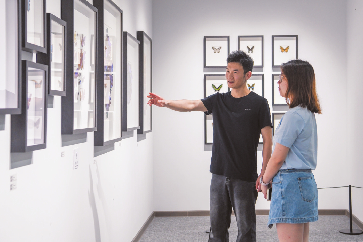 在万象城一楼另一侧,克里斯自然艺术展也在对外展出。“本次展览带来了150余幅自然艺术作品,其中包括20余幅全球限量之作。馆内设有生态手工制作活动,能让小朋友动手制作艺术标本,观展体验将更好。”7月9日,克里斯自然艺术展海口店店长霍文政介绍,这种沉浸式展览能够很好地吸引观众,让观众不再是被动的旁观者,而是互动的参与者,从而提升观众的参与度和体验感。
