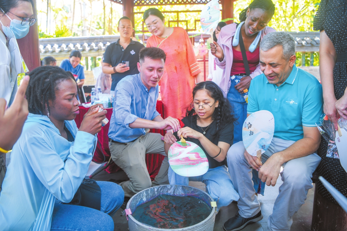 漆扇出水的美丽一幕,令来自喀麦隆的艾美丽十分惊叹。当天,她用毛笔在空白扇面上郑重地写下了自己的中文名,并使用金色、蓝色、青色大漆,绘制出一把独一无二的漆扇。“非常神奇,也很有成就感。”艾美丽拿着漆扇爱不释手地说,她从活动中了解到漆扇的悠久历史,也被中国传统文化深深折服,“我能从漆扇中感受到中国艺术之美和人文之美,也更加热爱中国文化。”