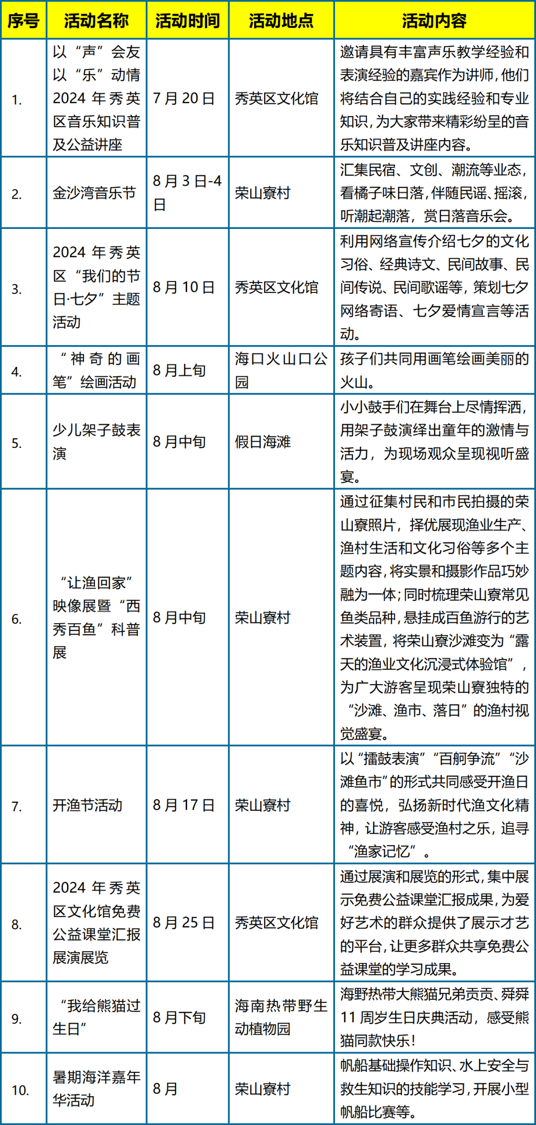 2024年秀英区暑期活动一览表